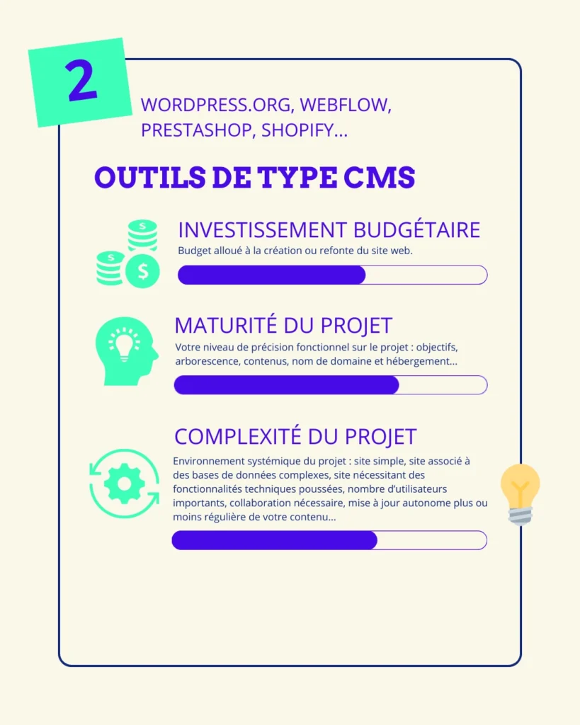 C’est le bon moment pour adopter un CMS (Content Management System), comme WordPress, Webflow, Joomla ou d’autres, qui vous permettront de gérer votre site avec plus de flexibilité et d’ambition.