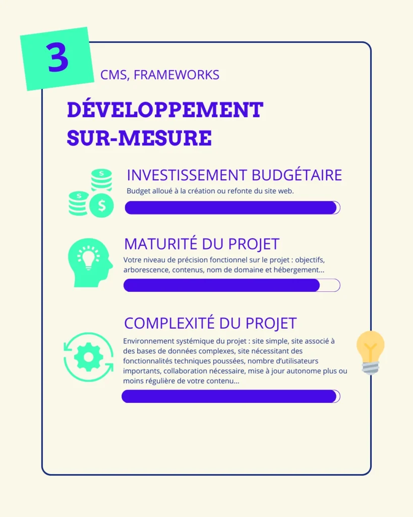 Ici, on entre dans une autre dimension : un projet web complexe, impliquant une structure technique avancée, du développement sur-mesure et une intégration avec d’autres outils (CRM, ERP, etc.).